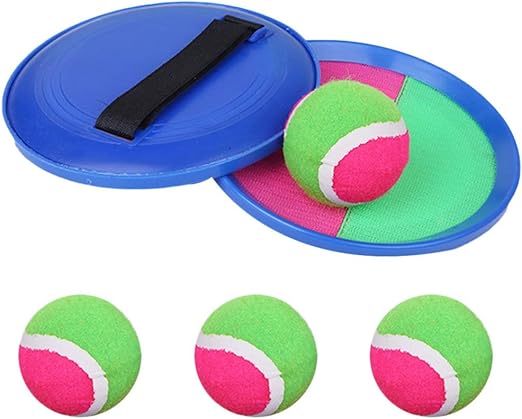 Das Klettballspiel macht richtig Laune! Mit 4 wasserdichten Fangscheiben und 4 Bällen können 2-4 Personen gleichzeitig spielen. Super für den Garten, Strand oder Park. Die Scheiben sind robust und doppelt genäht, halten also auch wildem Spiel stand. Die Handschlaufe ist verstellbar und passt für Kinder ab 3 Jahren und Erwachsene. Fördert die Hand-Auge-Koordination und ist ein tolles Spiel für die ganze Familie. Inklusive Tragetasche für unterwegs.