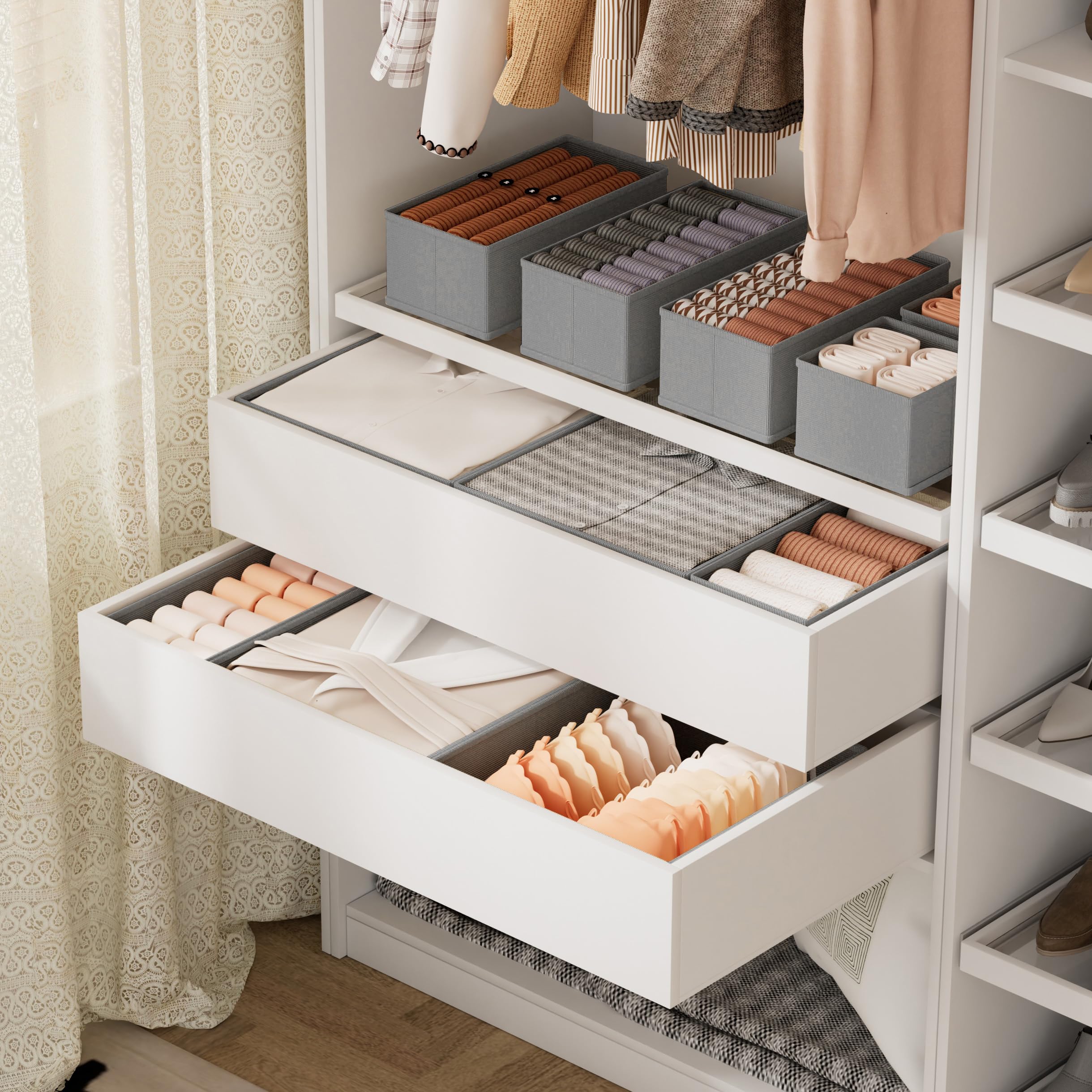 XIVIRACK Schubladen Organizer 10er Set - Faltbare Aufbewahrungsboxen Grau