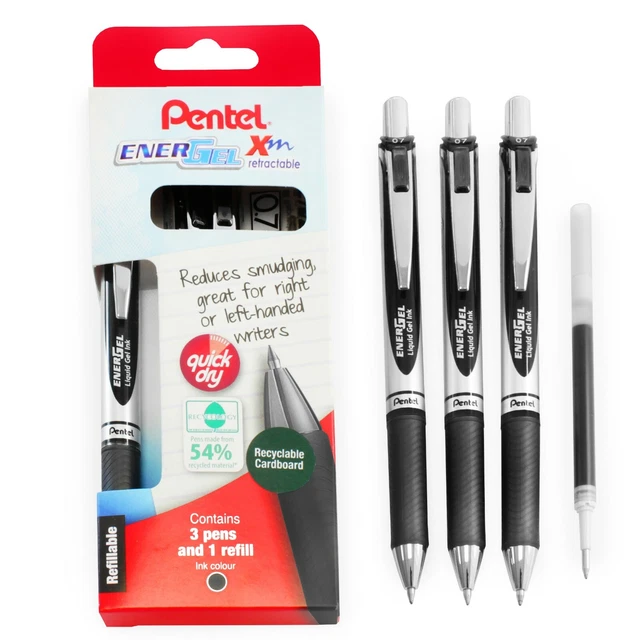 Pentel EnerGel XM BL77 Gelschreiber 0,7mm - 3er Pack Schwarz 54% Recycelt