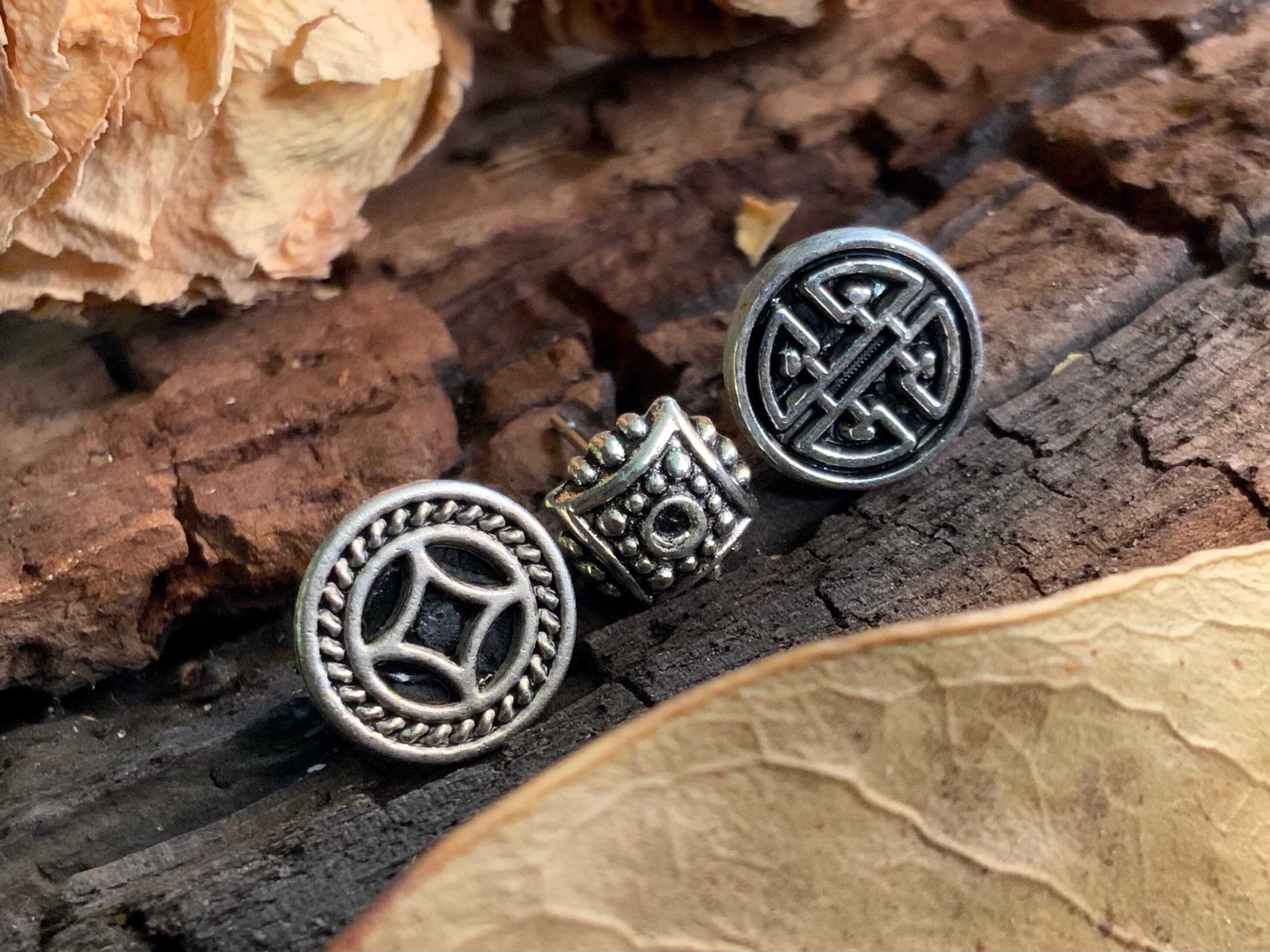 XPEX Wikinger Ohrringe Herren - Nordische Runen Creolen Aus Edelstahl Schwarz/Silber
