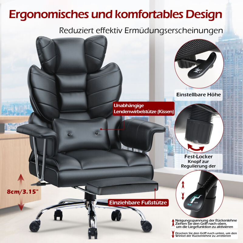 XUEGW Chefsessel Mit Fußstütze - Höhenverstellbarer Bürostuhl Leder