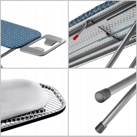 Schluss mit Rückenschmerzen beim Bügeln! Dieses Hazeatte Bügelbrett in XXL-Größe macht Bügeln zum Kinderspiel. Mit 120 cm Länge und 39 cm Breite hast du genug Platz für selbst die größten Hemden und Tischdecken.\n\nDas Beste: Du kannst die Höhe stufenlos von 0 bis 95 cm verstellen - ob du lieber stehst oder sitzt, findest du ganz easy deine perfekte Bügelposition.\n\nPraktische Features:\n- Integrierte Ablage fürs Bügeleisen\n- Robuster Metallrahmen\n- Rutschfeste Füße\n- Faltbar für platzsparende Aufbewahrung\n\nDas Bügelbrett ist super stabil und kippt nicht, selbst wenn du kräftig bügelst. Der Bezug ist hochwertig und sorgt für glatte Ergebnisse ohne Falten.\n\nMaße: 120 x 39 cm\nMaximale Höhe: 95 cm\nFarbe: Grau\n\nEgal ob für die große Wäscheberge oder nur mal schnell ein Hemd - dieses Bügelbrett ist dein neuer bester Freund im Haushalt!