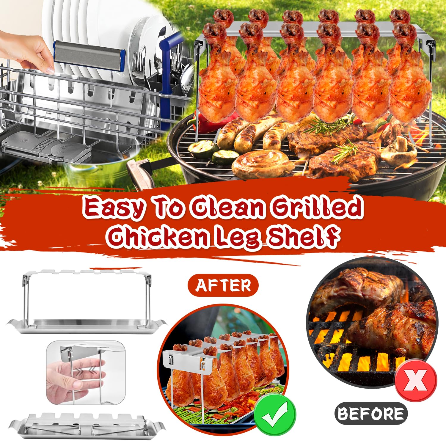 Xersex Hähnchenschenkel Halter Edelstahl - Grillständer Für 12 Schenkel Mit Auffangschale & Zubehör