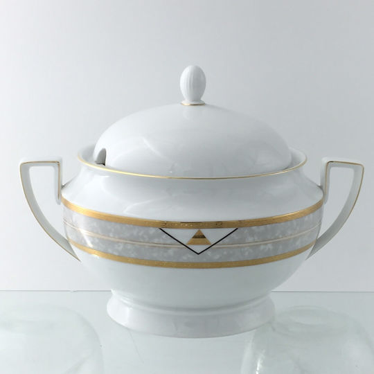 Xoeryoy Suppenterrine 1,5 Liter Keramik - Weiße Servierschale Mit Goldrand