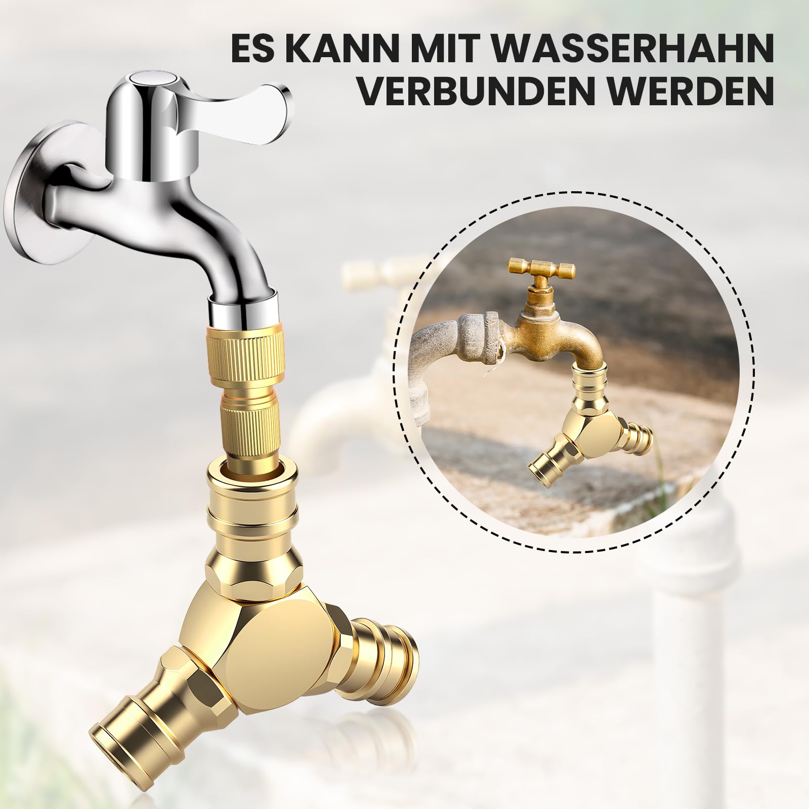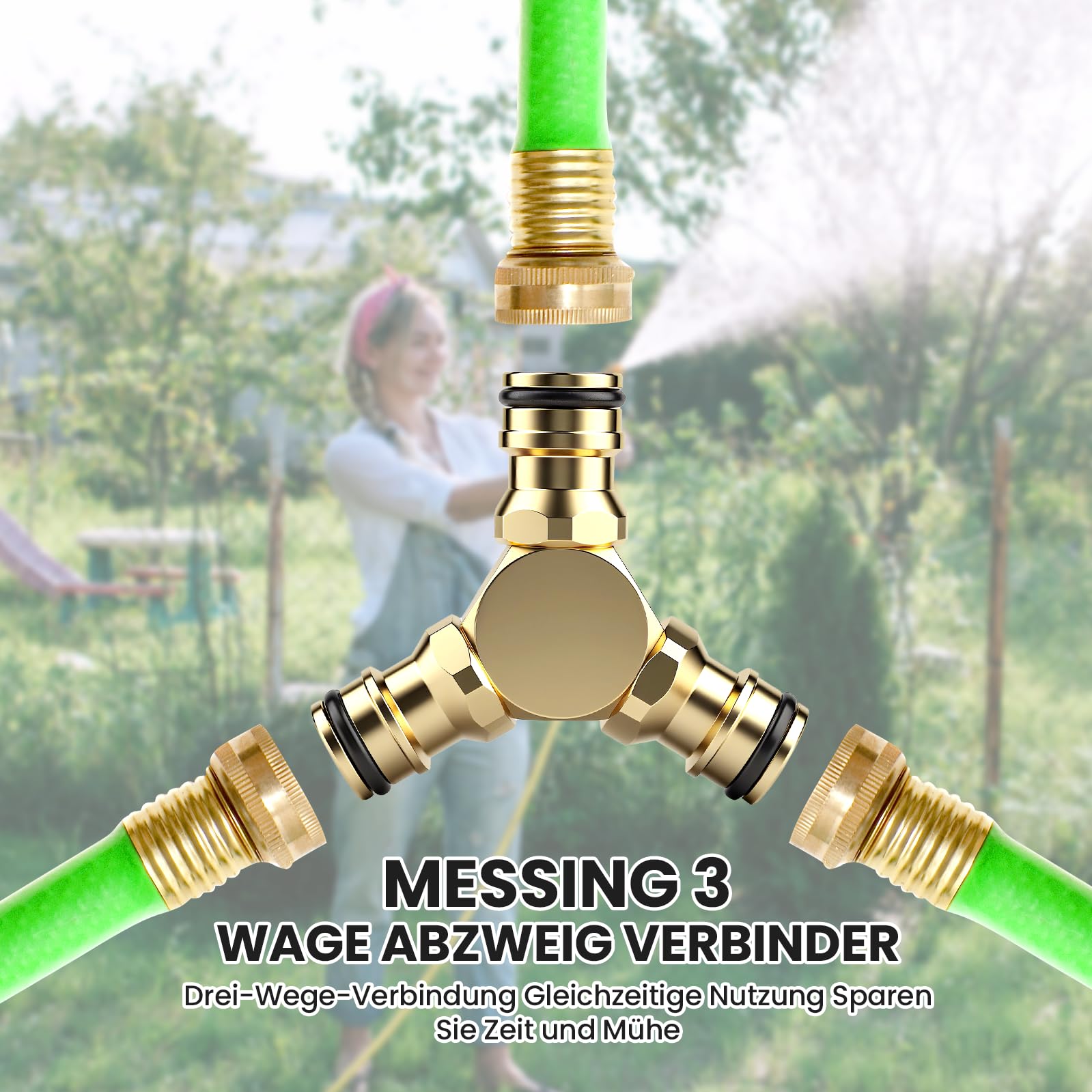 Einfach zwischen Gartenschlauch und Wasserhahn klemmen und schon kannst du zwei Geräte anschließen. Perfekt für die Gartenbewässerung, Auto-Wäsche oder den Balkon.