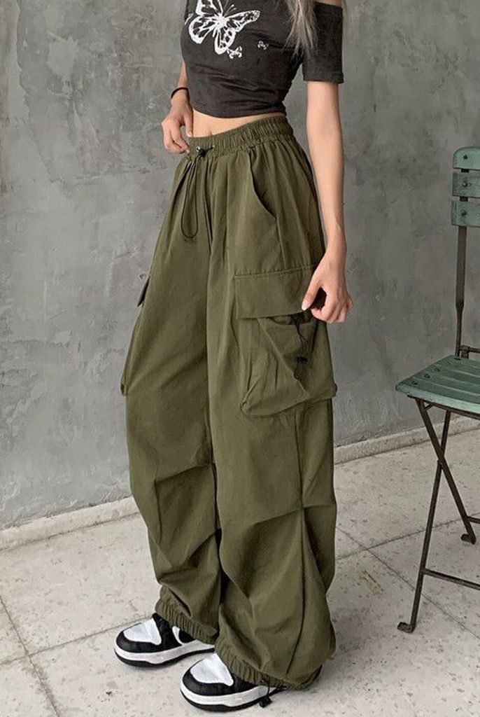 Damen Cargohose Baggy Y2K - Weite Hose Mit 6 Taschen, High Waist