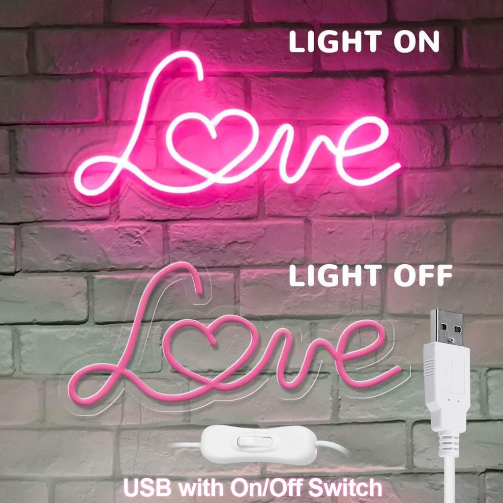 YIVIYAR LOVE Neonlicht Rosa - Batterie & USB LED Leuchtschild Für Schlafzimmer