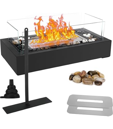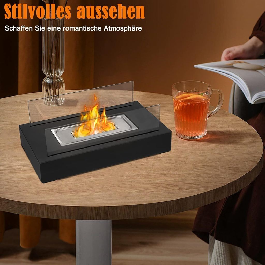 YUENFONG Tischkamin Bio Ethanol - Edelstahl & Glas Für Innen/Außen