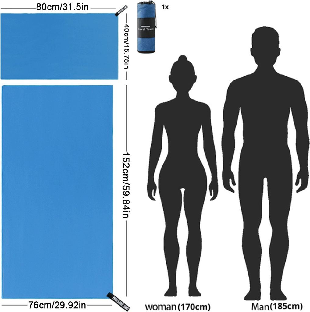 YUNXCNA Sporthandtuch 2 Stück - 120x50 Cm Mikrofaser Mit Reißverschlusstasche