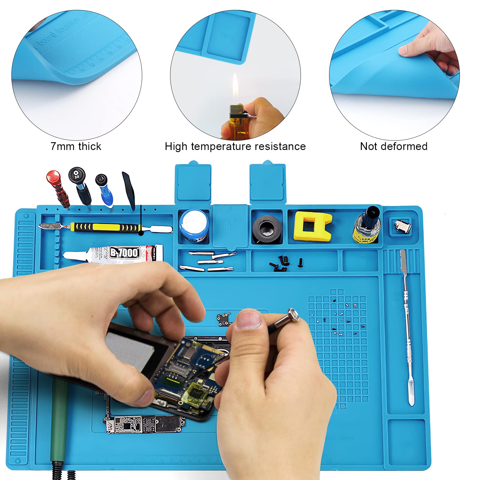 YUSHIHU Silikon Lötmatte 45x30cm - Hitzebeständig Bis 500°C Mit Lineal & Schraubenkerben