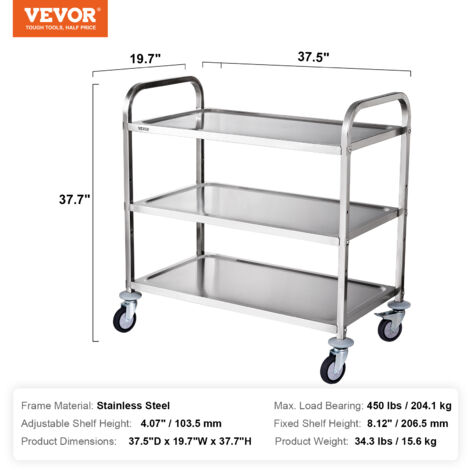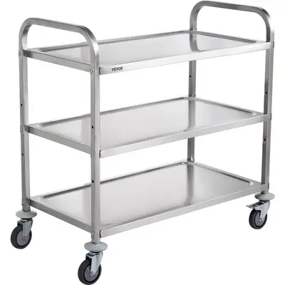Ordnung und Mobilität in einem! Dieser Edelstahl-Servierwagen ist der Alleskönner für jeden Bereich. In 3 Größen erhältlich: 60x40x86 cm, 66x44x86 cm oder 80x48x86 cm - such dir deine passende Größe aus. Mit 4 leisen Gummirädern - zwei davon feststellbar. Bis zu 100 kg Tragkraft - da kannst du richtig was draufpacken. Rostfrei und leicht zu reinigen - perfekt für Küche, Labor, Salon oder Büro. Einfach zu montieren und super stabil. Ob als Barwagen, Transporthelfer oder Ablage - dieser Wagen macht alles mit. Hol dir jetzt diesen praktischen Begleiter und erleichtere dir den Alltag!
