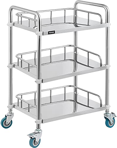 YYDM Servierwagen Edelstahl - Rollwagen Mit 4 Rädern & 100kg Tragkraft