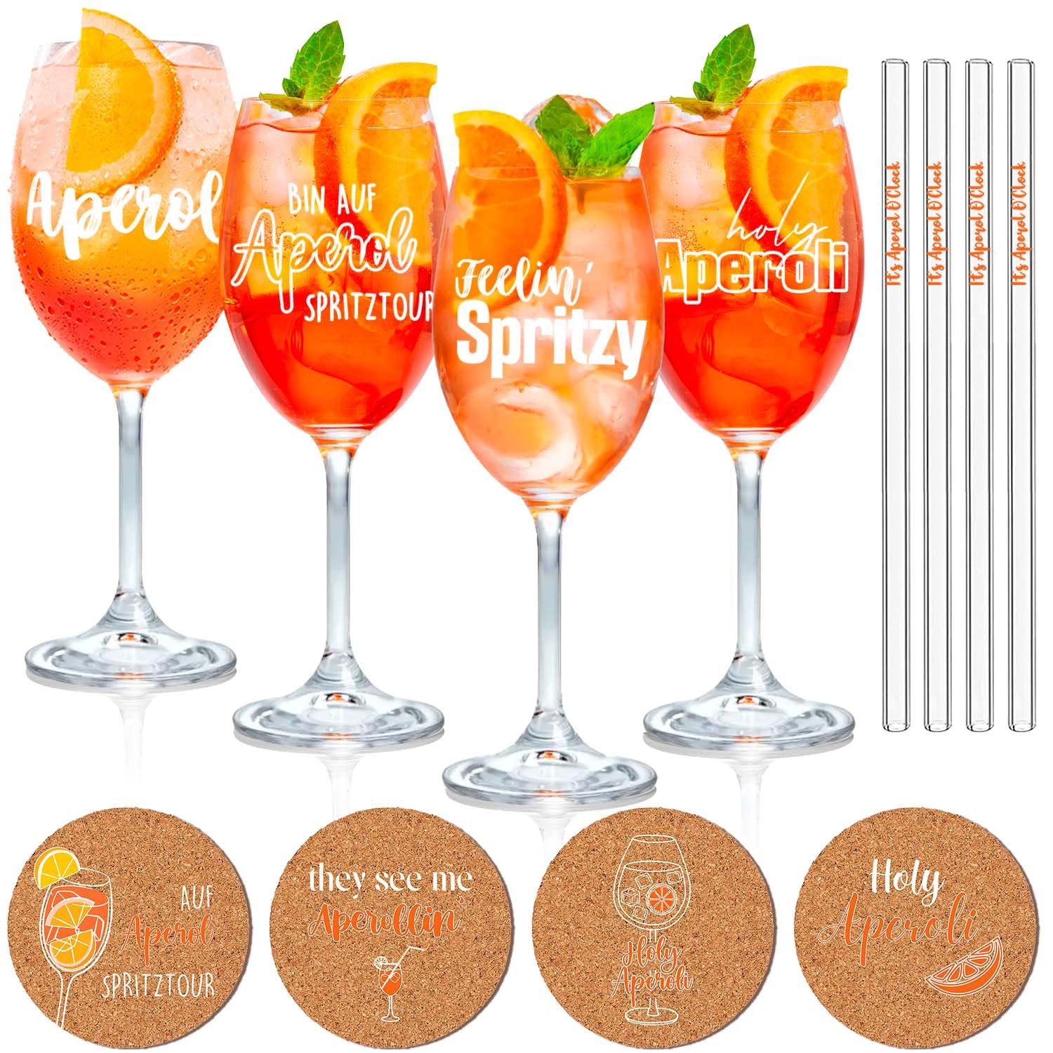 YYSWSAKY Aperol Spritz Gläser Set - Cocktailglas Mit Deckel & Strohhalm