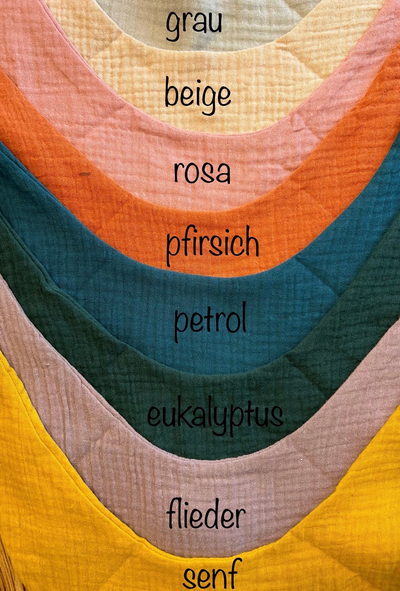 Perfekter Schutz für sabbernde Babys! Dieses 8-teilige Lätzchen-Set aus weicher Musselin-Baumwolle saugt zuverlässig Flüssigkeiten auf. Vorderseite Musselin, Rückseite Frottee für maximale Saugfähigkeit. Mit 2 nickelfreien Druckknöpfen in 3 Größen verstellbar. Passt von Neugeborenen bis 36 Monaten. Vielseitig als Spucktuch, Waschlappen oder Lätzchen verwendbar. Maschinenwaschbar bis 40°C. In verschiedenen fröhlichen Farben. Ideal als Geschenk für Baby-Partys. Hält dein Baby trocken und sauber während der Zahnungsphase!