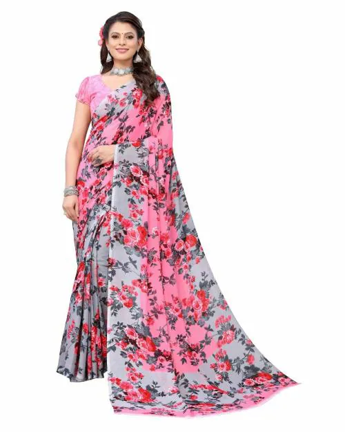 Yashika Damen Saree Georgette - Traditionell Mit Jacquard-Spitze Für Feste & Hochzeiten