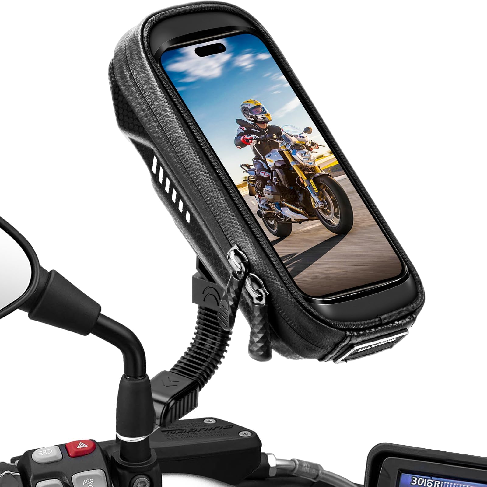 Dein Smartphone sicher auf dem Motorrad oder Fahrrad dabei? Mit dieser Yesay Halterung kein Problem! IP66 wasserdicht - hält auch bei Regen stand. Passt für Smartphones von 5,5 bis 7,0 Zoll (bis 11mm Dicke mit Hülle) - also für die meisten Modelle. 360° drehbar - du findest immer den perfekten Blickwinkel. HD-empfindliches Filmfenster - Touchscreen und Face ID funktionieren einwandfrei. Mit Anti-Vibration - kein Wackeln auch auf holprigen Straßen. Transparentes Kamera-Fenster - du kannst Fotos und Videos machen ohne die Halterung abnehmen zu müssen. Aluminium-Clip mit Verriegelung - extra Sicherheit für dein teures Handy. Passt auf Lenker von 11-53mm Durchmesser - also für Motorräder, Fahrräder, Roller und mehr. Einfache Montage - in Minuten installiert. Endlich Navigation, Musik und Anrufe sicher unterwegs nutzen können!