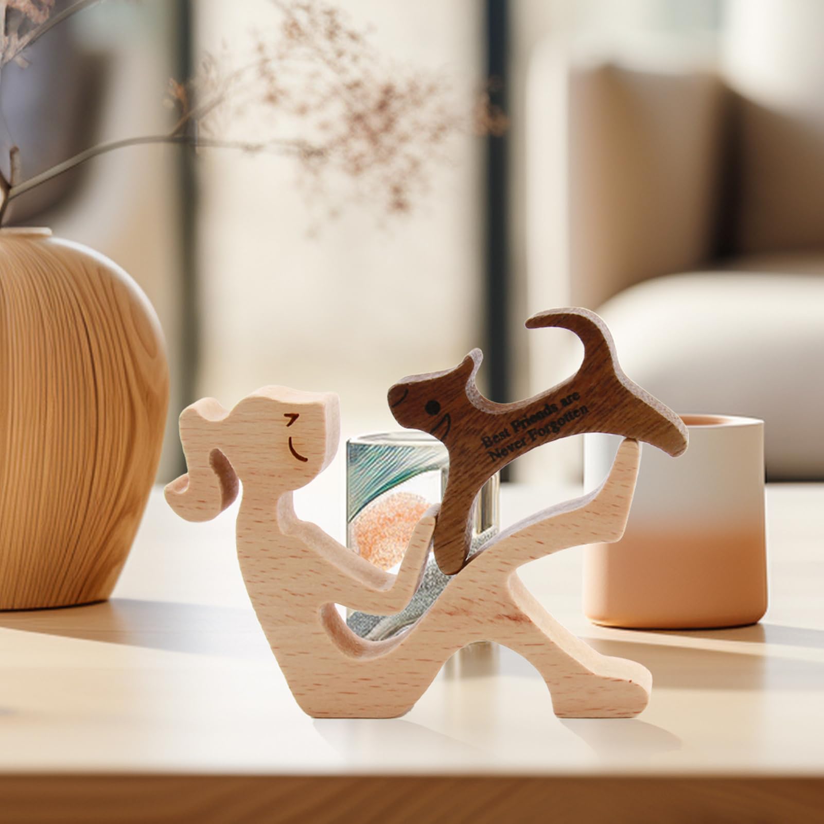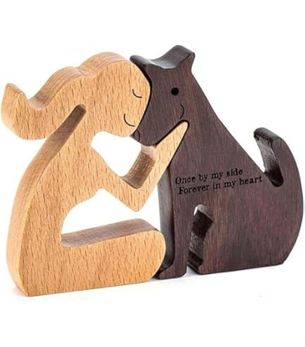 Yewseas Holzstatue Mann Mit Hund - Handgeschnitzte Dekofigur Für Hundeliebhaber