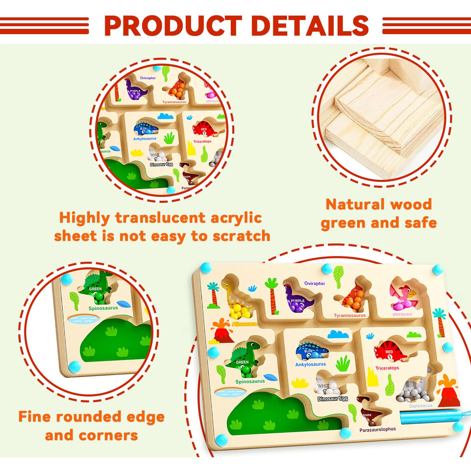 Das Yistoi Magnetspiel ist der absolute Hit für kleine Entdecker ab 2 Jahren! Mit dem Magnetstift können Kinder bunte Perlen durch das Labyrinth führen und dabei spielerisch Zahlen und Farben lernen. Aus hochwertigem Naturholz mit wasserbasiertem Lack - super glatt geschliffen und absolut kindersicher. Die starken Magnete halten die Perlen sicher auf ihrem Weg. Perfekt für die Entwicklung von Feinmotorik, Konzentration und Hand-Auge-Koordination. Mit 23,2x15,7x2 cm kompakt und leicht - ideal für unterwegs oder zu Hause. Die bunten Cartoon-Motive machen einfach Spaß und wecken die Lernfreude. Toll als Geschenk für Geburtstage, Weihnachten oder einfach so! Ein Montessori-Spielzeug, das wirklich was bringt und lange Freude macht.
