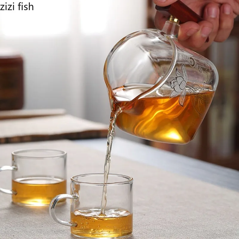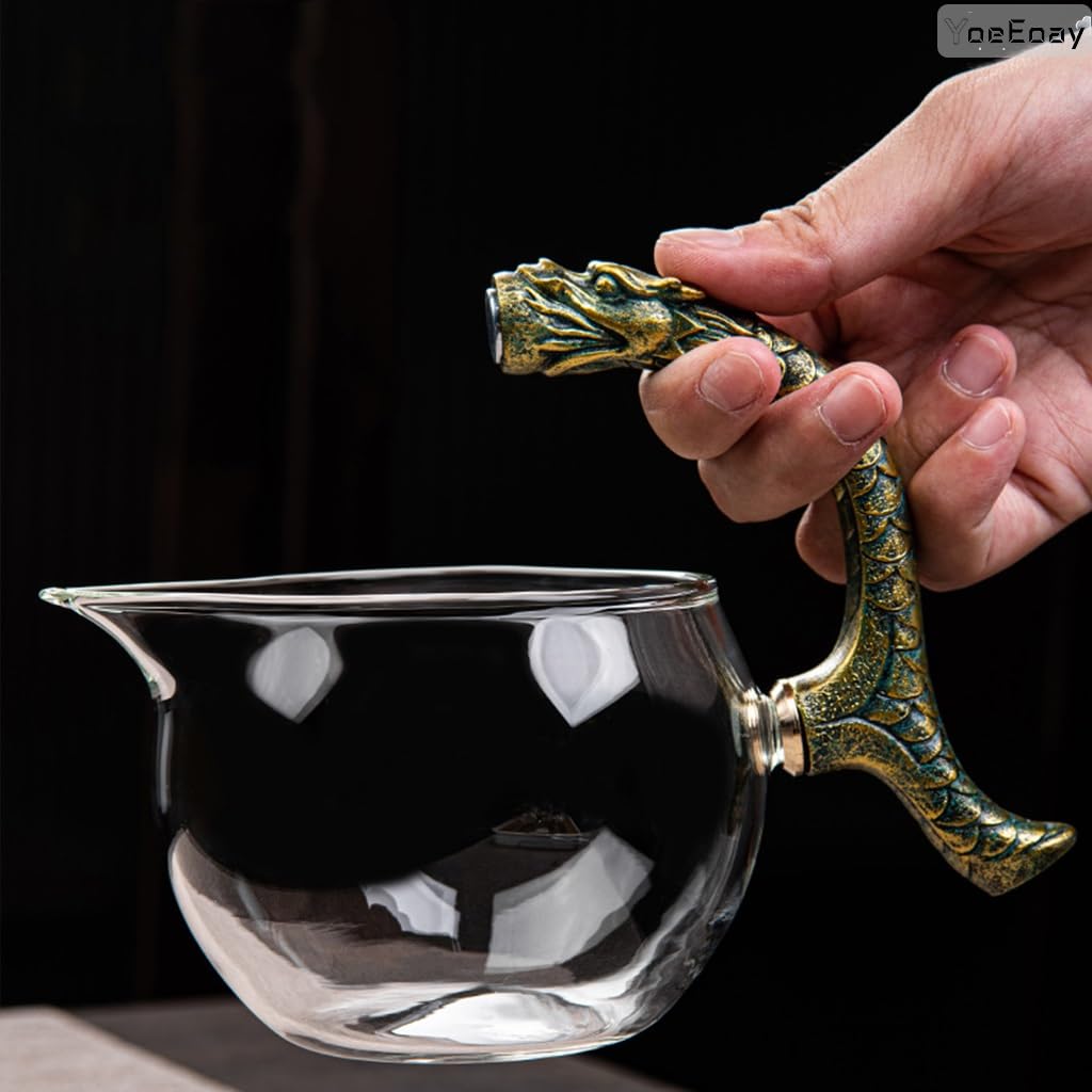 Erlebe die chinesische Teekultur zu Hause! Dieses wunderschöne Kung Fu Tee Set aus hitzebeständigem Borosilikatglas lässt Tee-Liebhaber-Herzen höher schlagen. Die magnetische Teekanne mit Drachen-Motiv gießt tropffrei - einfach genial! Im Set: Teekanne, Gaiwan, Gongdao-Tasse und 6 Trinktassen. Perfekt für losen Tee, Kaffee oder Blütentees. Das halbautomatische Design macht das Aufbrühen zum Erlebnis. Leicht zu reinigen und spülmaschinenfest. Sieht nicht nur toll aus - der Tee schmeckt auch noch besser daraus! Perfektes Geschenk für Tee-Fans oder um sich selbst zu verwöhnen. Mach deine Tee-Zeit zur kleinen Auszeit - du wirst es lieben!