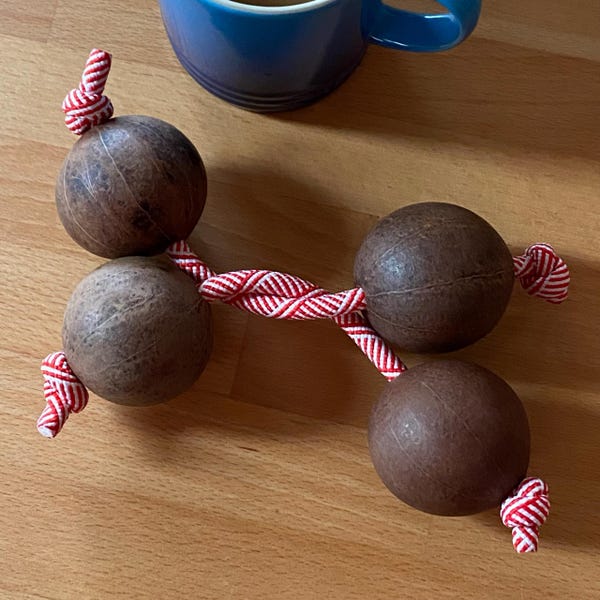 Entdecke die faszinierenden Rhythmen Westafrikas mit diesem authentischen Asalato Shaker-Set! Das komplette Set enthält zwei Paar Asalatos in leuchtenden Blau- und Weißtönen, plus zwei extra Saiten für individuelle Anpassung. Die matte Oberfläche liegt super in der Hand und die nahtlosen Kugeln sind besonders langlebig. Ob du Anfänger oder Profi-Musiker bist - diese Shaker bringen sofort afrikanisches Feeling in deine Musik. Du kannst sie einzeln als Paar verwenden oder beide in der mitgelieferten Flasche kombinieren für einen kräftigeren Sound. Perfekt für Percussion-Begeisterte, Weltmusik-Fans oder alle, die mal was Anderes ausprobieren wollen. Die traditionelle Kashaka-Technik ist einfacher zu lernen als man denkt und macht süchtig! Super auch für die musikalische Früherziehung oder Therapie. Bring Leben in deine Rhythmus-Sessions und beeindrucke deine Freunde mit ungewöhnlichen Klängen. Einfach in die Hand nehmen, schütteln und den afrikanischen Groove genießen!
