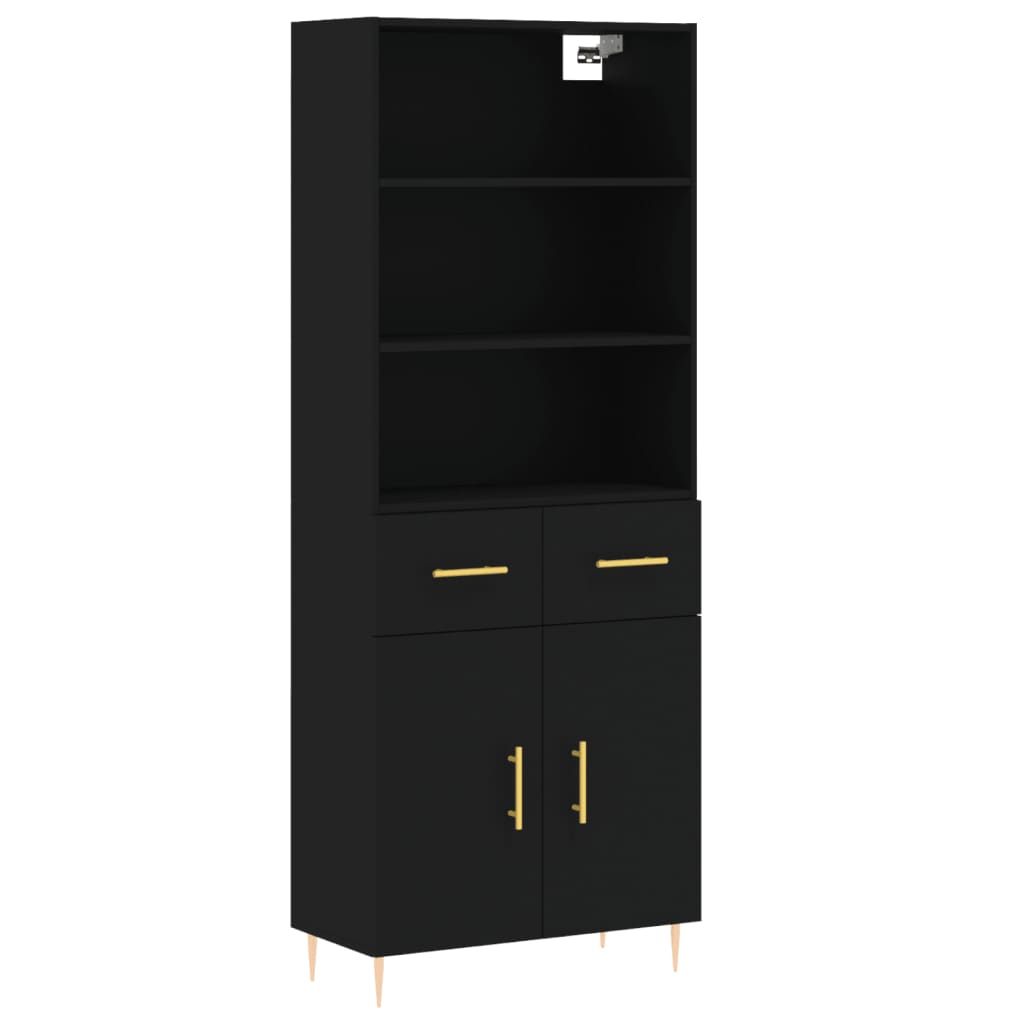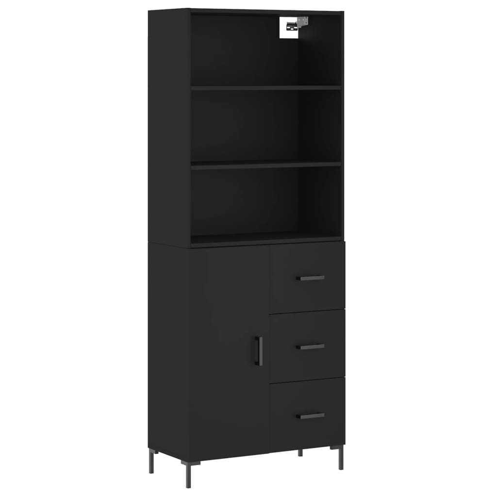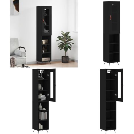 ZEYUAN Highboard Schwarz 69,5x34x180 Cm - Sideboard Mit Metallfüßen Für Wohnzimmer
