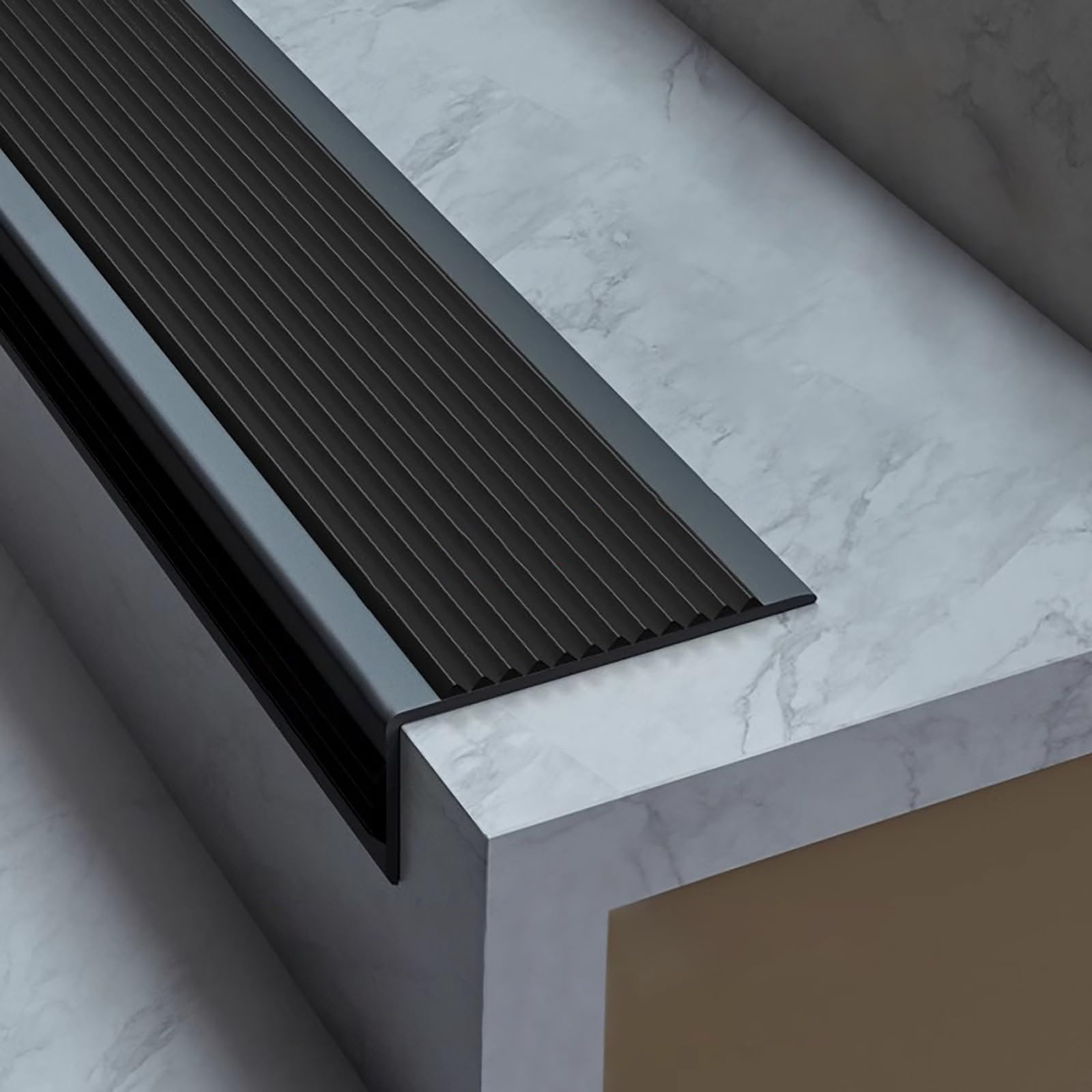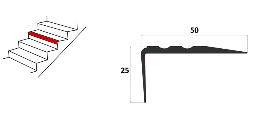 ZHIYUQL Treppenkantenprofil 1 Meter - Selbstklebender Rutschschutz Für Innen & Außen 50×48mm Schwarz