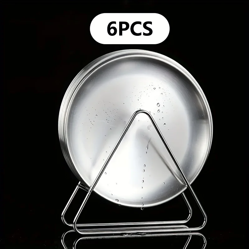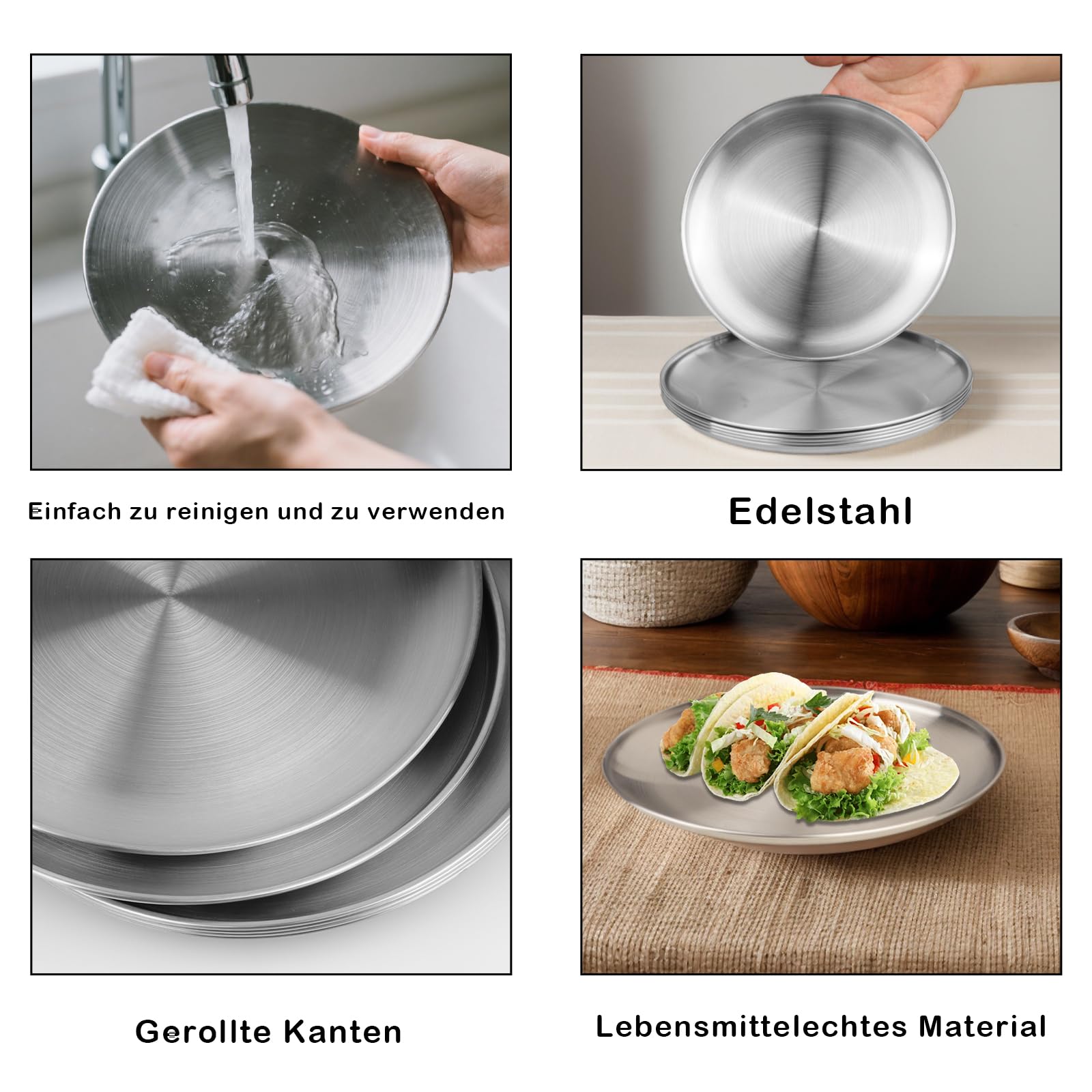 ZHLIMY 6 Stück Edelstahl Teller - 20cm Camping-Geschirr Für Outdoor & Küche
