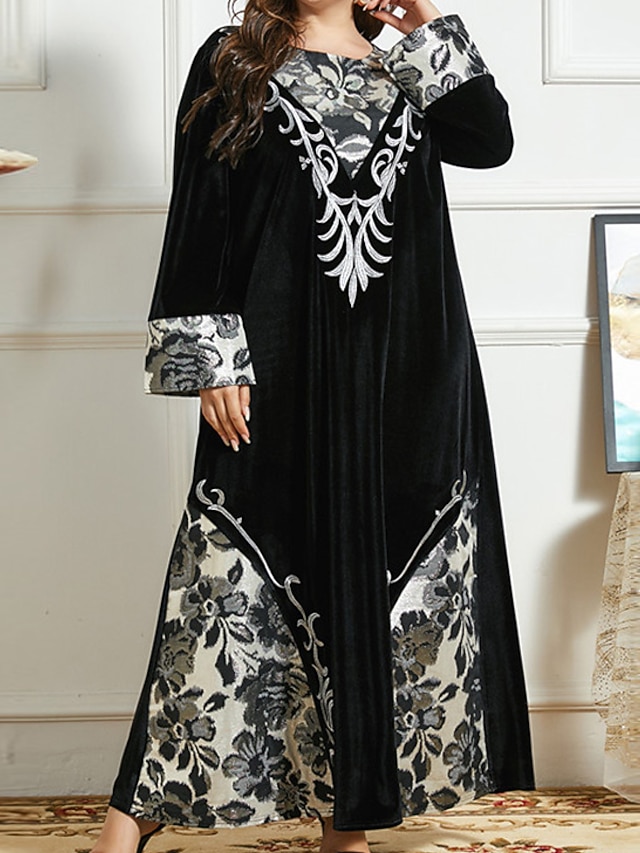 ZOMVA Maxikleid Übergröße - Elegantes Langarmkleid Mit Gürtel Und Taschen