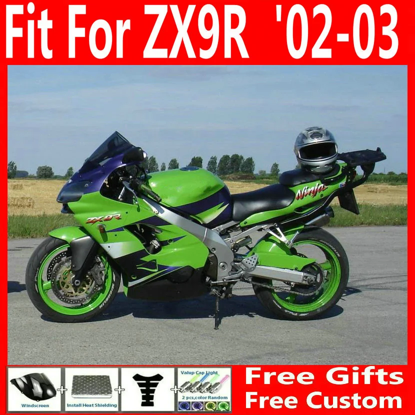 ABS Verkleidungsset Kawasaki Ninja ZX9R 2002-2003 - Komplettset Grün Schwarz