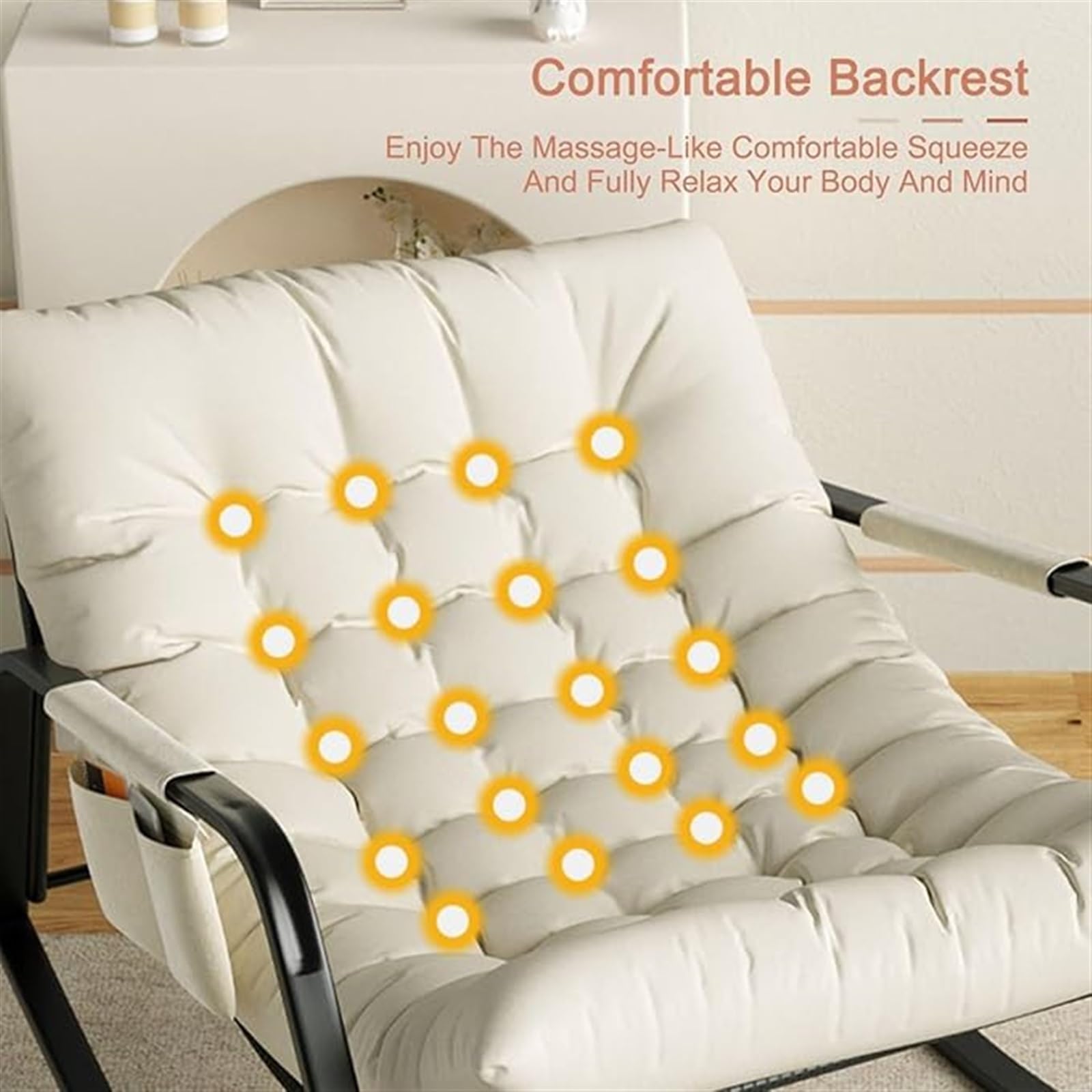 Stell dir vor: Ein gemütlicher Abend, du schaukelst sanft hin und her und genießt die Entspannung... Genau dafür ist dieser Doppel-Schaukelstuhl perfekt! Mit stolzen 250 kg Tragkraft hält er echt was aus - da können auch zwei Erwachsene problemlos zusammen sitzen. Der Sitz und die Rückenlehne sind super weich gepolstert, mit Baumwollfüllung, sodass du es dir richtig gemütlich machen kannst. Besonders cool: Die Rückenlehne hat 5 verstellbare Positionen - ob du sitzen, lesen oder einfach nur chillen willst. Die praktische Seitentasche ist ideal für Bücher, die Fernbedienung oder dein Handy. Der Metallrahmen ist mega stabil und hat ein Anti-Kipp-Design. Aufbauen ist auch kein Hexenwerk - in ca. 15 Minuten steht der Stuhl fertig da. Perfekt fürs Wohnzimmer, Schlafzimmer oder auch mal für den Balkon. Der blaue Stoff mit dem schwarzen Rahmen sieht dabei noch richtig modern aus. Einfach reinsetzen, zurücklehnen und den Stress des Tages wegschaukeln!
