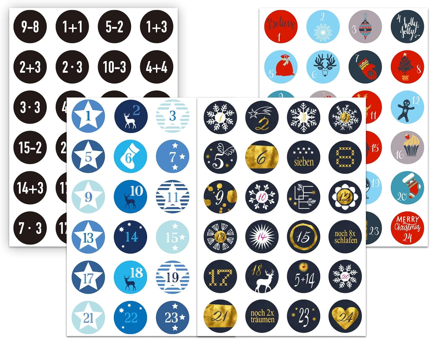 Adventskalender Zahlen Aufkleber - 6x24 Stück Für Selbstgemachte Weihnachtskalender