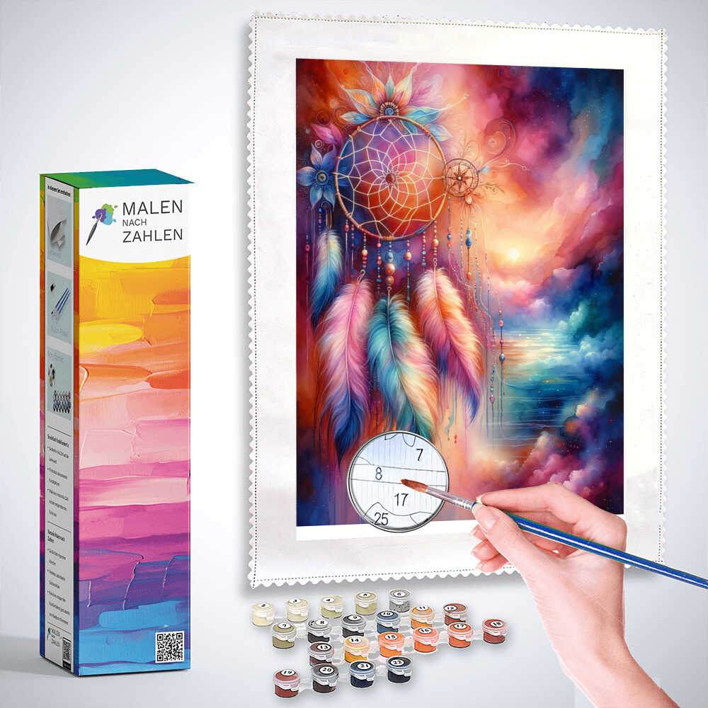 Malen Nach Zahlen Erwachsene Blume Traumfänger - 30x40cm Set Mit Rahmen & Farben