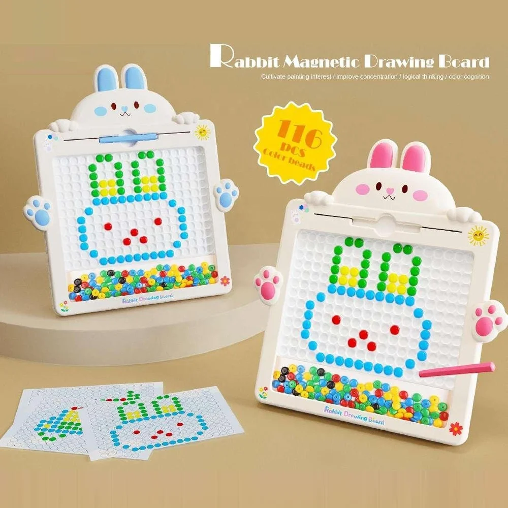 Kinder lieben dieses Brett! Sie können Buchstaben nachfahren, erste Worte schreiben oder einfach kreativ sein. Die magnetischen Kugeln machen lustige Geräusche und fördern die Feinmotorik. Perfekt für unterwegs, im Auto oder zu Hause!