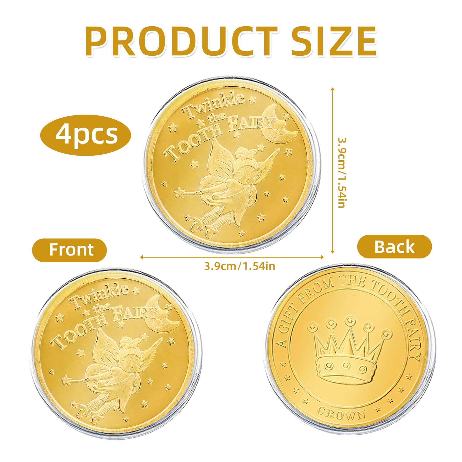 Muteitt 4 Stück Zahnfee-Münzen Für Kinder | Goldene Belohnungsmünzen Für Verlorene Zähne