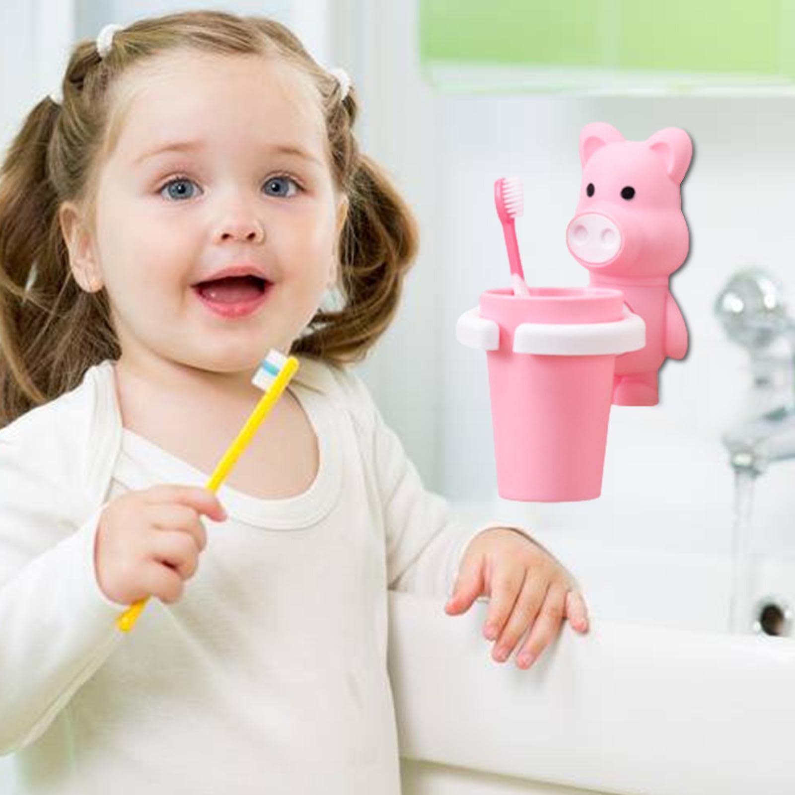 Zahnputzbecher Kinder - Niedlicher Schweinchen Halter Mit Spülbecher, Wandmontiert Für Badezimmer Organizer