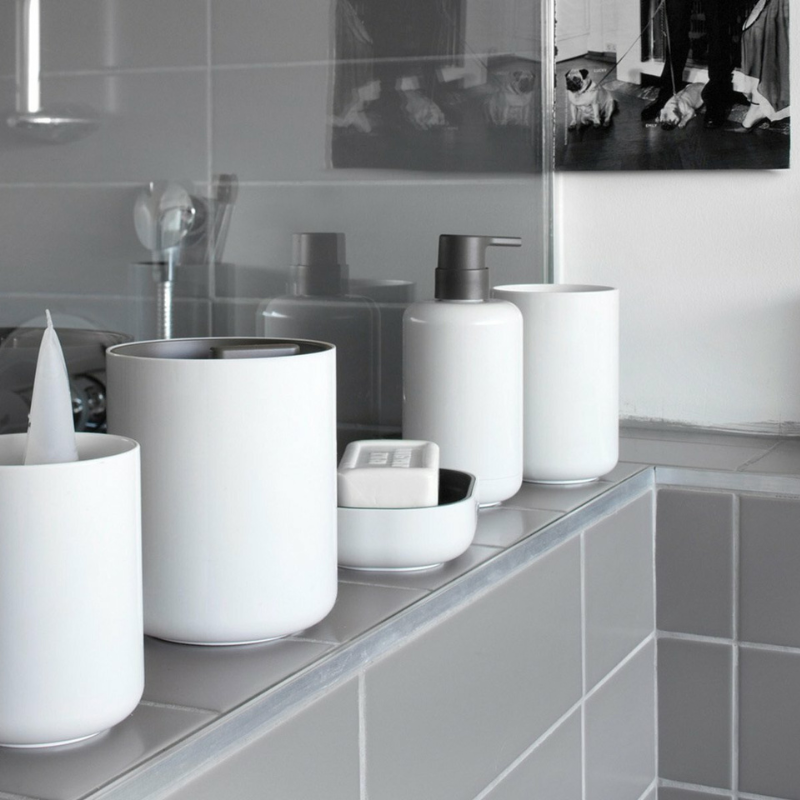 Mit 12 cm Höhe und 8 cm Durchmesser bietet er genug Platz für mehrere Zahnbürsten. Der farbige Einsatz setzt einen tollen Akzent - hier in reinem Weiß. Das Design von Edward Barber und Jay Osgerby ist einfach zeitlos schön.