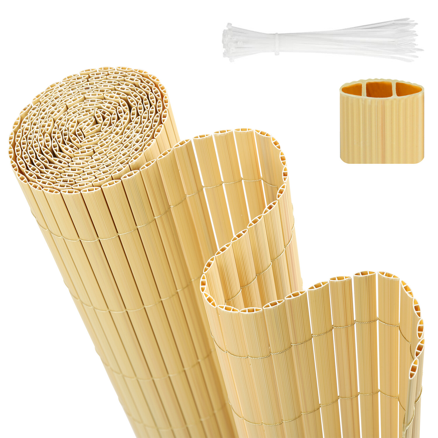 Perfekter Sichtschutz mit natürlichem Charme! Diese Bambusmatte aus echtem Schilfrohr schützt deine Privatsphäre zu etwa 70% - ideal für Balkon, Terrasse oder Garten. Die Matte ist 50cm hoch und 1200cm lang, lässt sich aber super einfach auf die gewünschte Höhe zwischen 50-160cm zuschneiden. Mit den beiliegenden Kabelbindern fixierst du sie im Handumdrehen. Das natürliche Braun passt zu jedem Gartenstil und verleiht deinem Outdoor-Bereich sofort Urlaubsflair. Wasserdicht und witterungsbeständig - hält auch bei Regen problemlos stand. Einfach ausrollen, zuschneiden, befestigen und den neugierigen Blicken der Nachbarn entkommen!