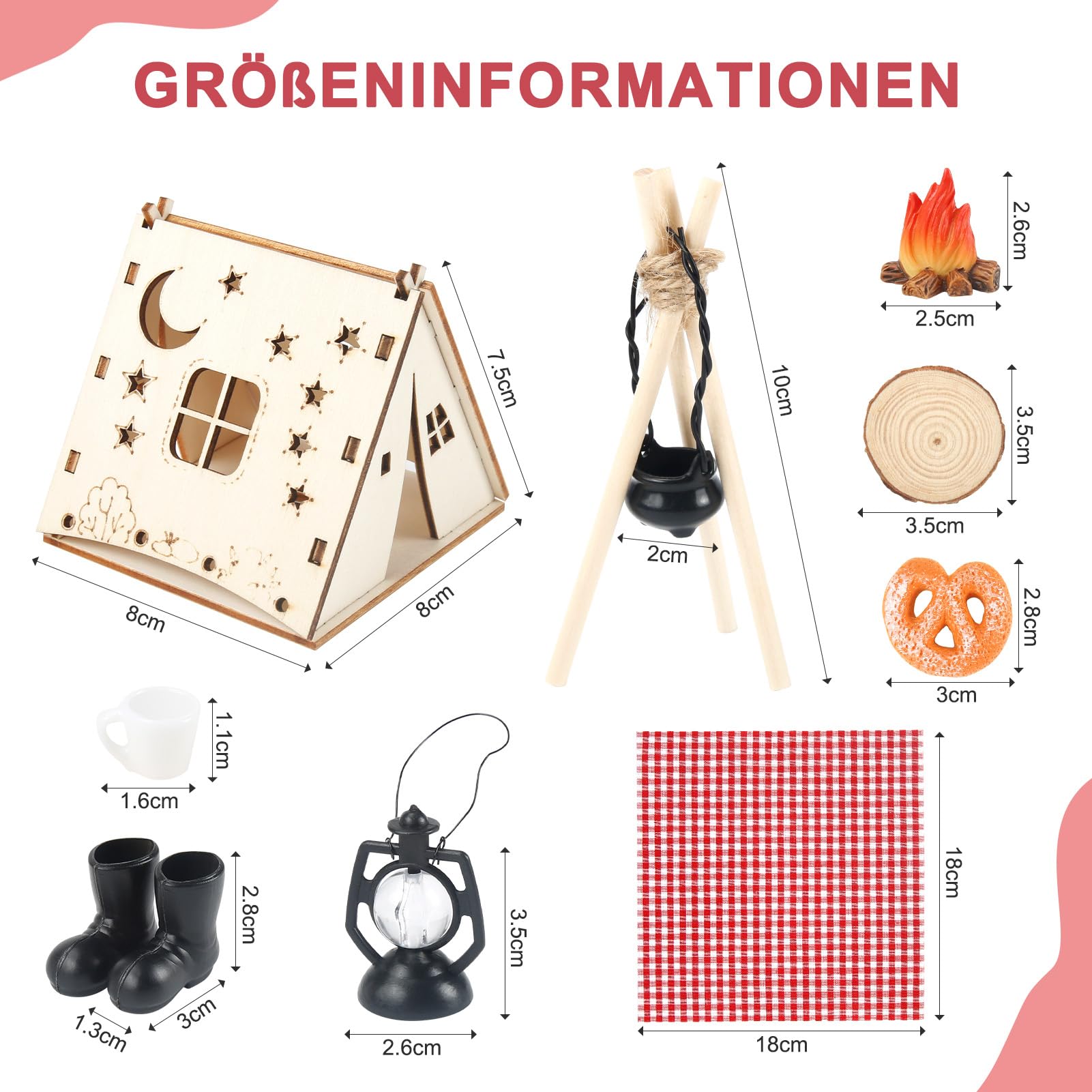 Oh, wie niedlich ist denn dieses Wichtel-Set! Perfekt für die magische Wichteltür in der Weihnachtszeit. Enthält ein winziges Zelt, niedliche Stiefel, eine Picknickdecke, eine tragbare Lampe und sogar Miniatur-Nachmittagstee! Alles im Maßstab 1:12 - also perfekt für Puppenhäuser. Die Verarbeitung ist super fein, keine scharfen Kanten. Bringt Leben in deine Weihnachtsdekoration und lässt Kinder an die magische Welt der Wichtel glauben. Einfach um das Zelt herum arrangieren und die Wichtel-Geschichte beginnt! Ideal als Geschenk für Kinder oder zum Selberbehalten. Macht die Vorweihnachtszeit noch magischer!