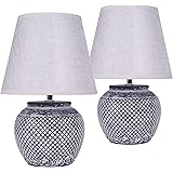 BRUBAKER 2er Set Tischlampen Zen Garden - Keramik Nachttischlampen In Anthrazit Grau