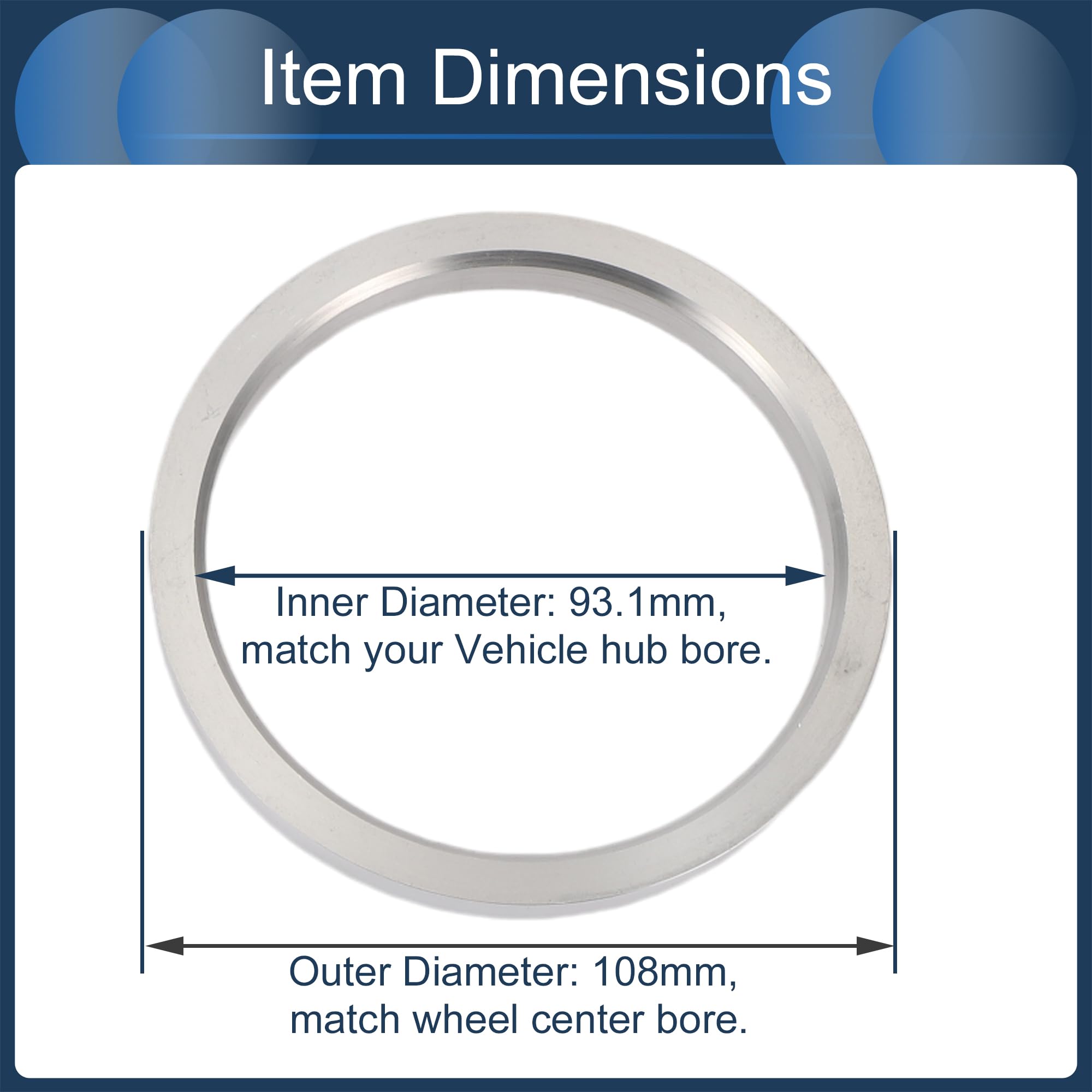 Vibrationen im Lenkrad? Diese Zentrierungsringe schaffen Abhilfe! Mit Außendurchmesser 108mm und Innendurchmesser 93,1mm passen sie perfekt für viele Honda, Acura, Lexus und Toyota Modelle. Aus hochwertiger Aluminiumlegierung in Silberoptik. Die Ringe füllen den Spalt zwischen Felge und Nabe und sorgen so für ruhigeres Fahren. Einfach zu montieren - einfach zwischen Nabe und Felge setzen. Im Set sind 4 Stück enthalten. Wichtig: Vor dem Kauf unbedingt die Maße deiner Felgen und Naben prüfen!