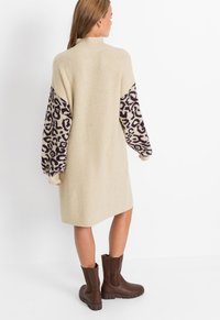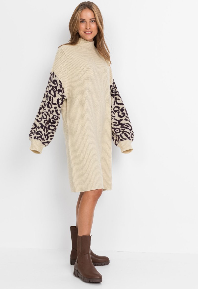 Zero Damen Strickkleid Mit Leopardenmuster - Figurbetont, Langarm, U-Ausschnitt