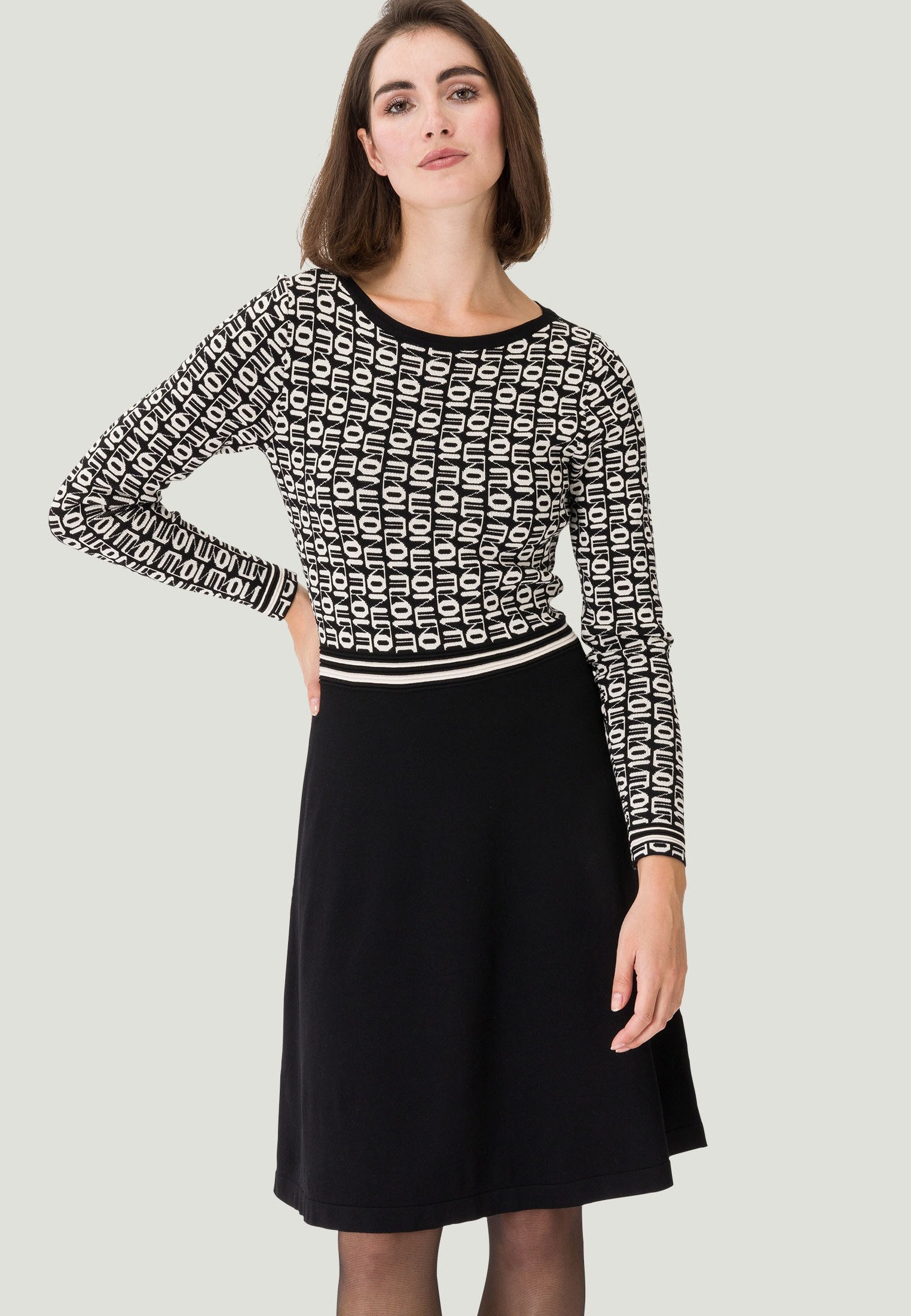 Schick und gemütlich? Dieses zero Strickkleid mit Leopardenmuster kombiniert beides! 👗 Figurbetont mit Langarm und U-Ausschnitt sitzt es perfekt und fühlt sich superweich an. Aus elastischem Material gefertigt, ist es ideal für den Alltag oder besondere Anlässe. Unser Model (178 cm) trägt Größe 36 - es unterstreicht deine Silhouette ohne zu zwicken. Einfach anziehen und stylisch durch den Tag gehen. Perfekt für alle, die es retro-modern lieben! 🐆