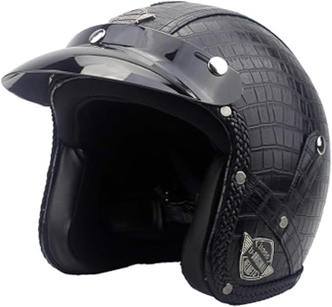 Retro Jet Motorrad Helm ECE Zertifiziert - Open Face Helm Lederoptik Unisex Mit Waschbarem Innenfutter