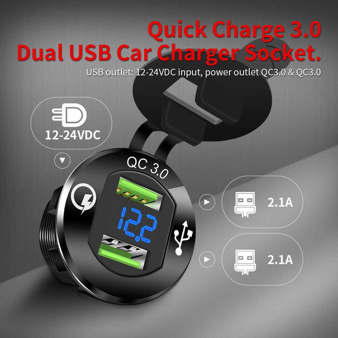 Immer volle Power im Auto? Mit der SUPRBIRD Zigarettenanzünder-Steckdose kein Problem! Dieses praktische Teil hat nicht nur eine klassische 12V-Buchse, sondern auch zwei USB-Anschlüsse mit Quick Charge 3.0 Technologie. So lädst du Smartphone, Tablet und Co. richtig schnell auf - selbst bei langen Fahrten. Das coole blaue Voltmeter zeigt dir immer an, wie es um deine Batterie steht. Und die integrierte LED-Leuchte hilft dir, die Buchse auch im Dunkeln schnell zu finden. Mit der 10A Sicherung bist du vor Überlastung geschützt. Einfach anschließen - die Kabel sind schon vorbereitet (rot für Plus, schwarz für Minus). Ob im Auto, Wohnmobil oder Boot: Dieses Ladegerät ist dein zuverlässiger Begleiter. Einfach praktisch, oder?