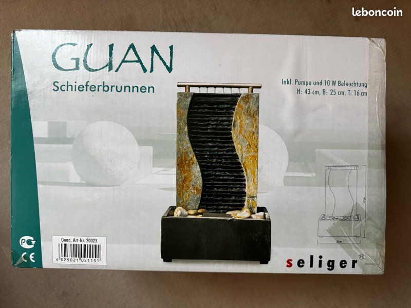 Entspannung pur für dein Zuhause! Der Schieferbrunnen Guan bringt beruhigendes Plätschern in deine vier Wände. Aus echtem Naturschiefer gefertigt - jedes Stück ein Unikat! Das Wasser fließt wellenförmig die Steinwand hinab und sorgt für eine mega Entspannungs-Atmosphäre. Mit integrierter Halogen-Beleuchtung, die abends für eine super Stimmung sorgt. Komplettset inklusive Pumpe (seliger 280 L), 2,5m Kabel und dekorativen Flusskieselsteinen. Maße: 43x25x16 cm - passt perfekt auf Sideboard, Regal oder Empfangstheke. Mit praktischem 3-Stufen-Schalter: alles aus, Pumpe + Licht an, oder nur Pumpe. Perfekt für Wohnzimmer, Büro oder Wartezimmer. Ein echter Hingucker, der gleichzeitig für Entspannung sorgt!