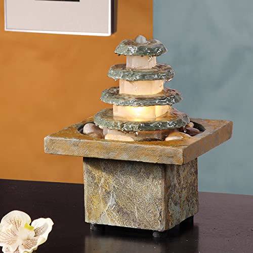 Schieferbrunnen Guan - Zimmerbrunnen Mit Beleuchtung & Pumpe