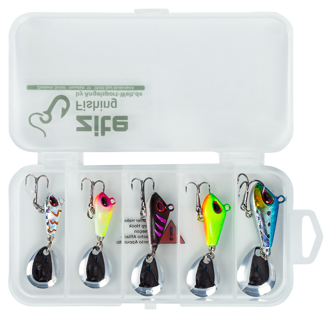 Und das Beste: Du bekommst alles schön ordentlich in einer praktischen Tacklebox. Fünf Köder in verschiedenen Gewichten - perfekt sortiert für deinen nächsten Angelausflug. Einfach einpacken und los geht's zu deinem Lieblingsspot! Egal ob du Anfänger oder Profi bist - mit diesen Ködern wirst du sicher Erfolg haben.