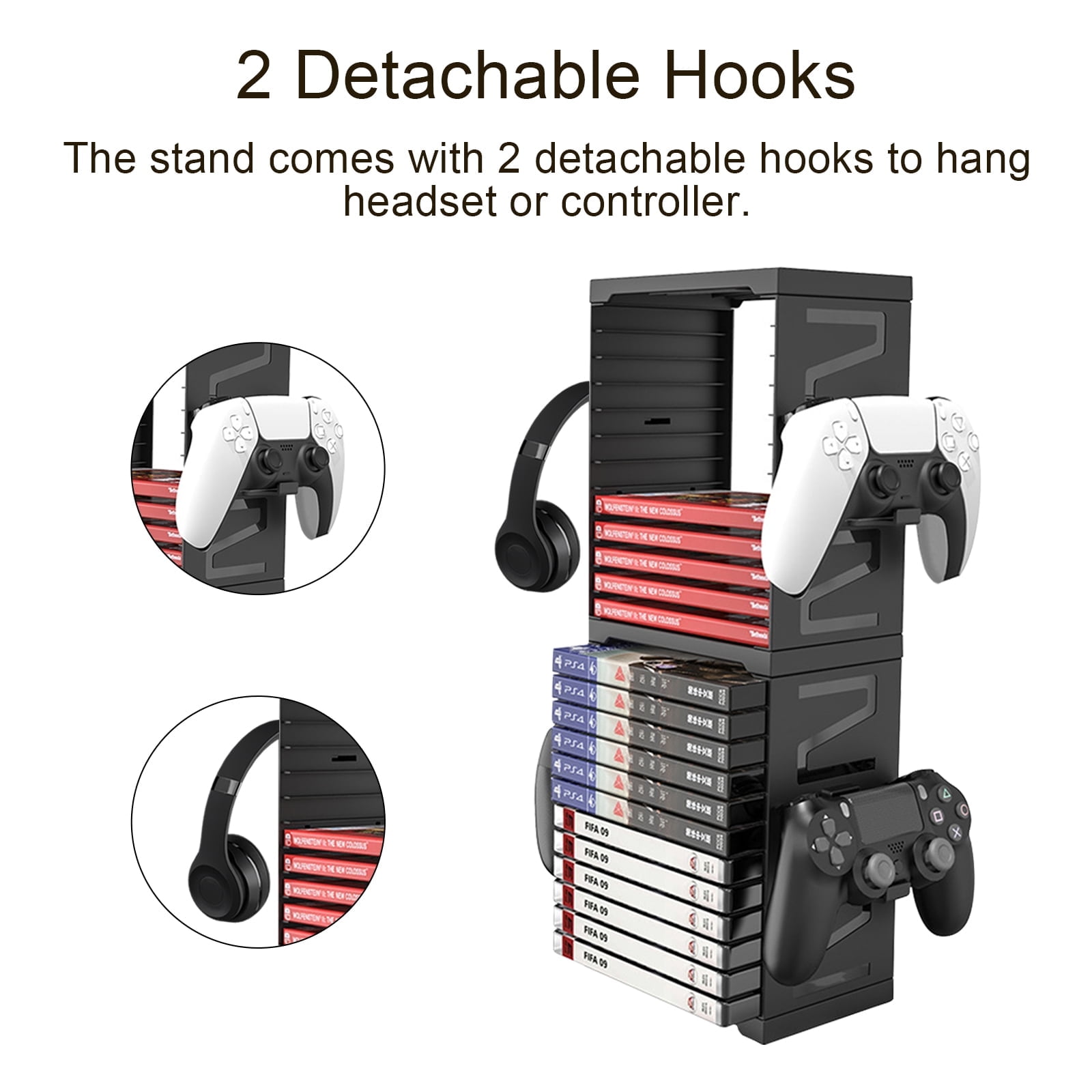 Zjyufy PS5 Spiel Ständer | Aufbewahrungsturm Für 18 Spiele & 4 Controller