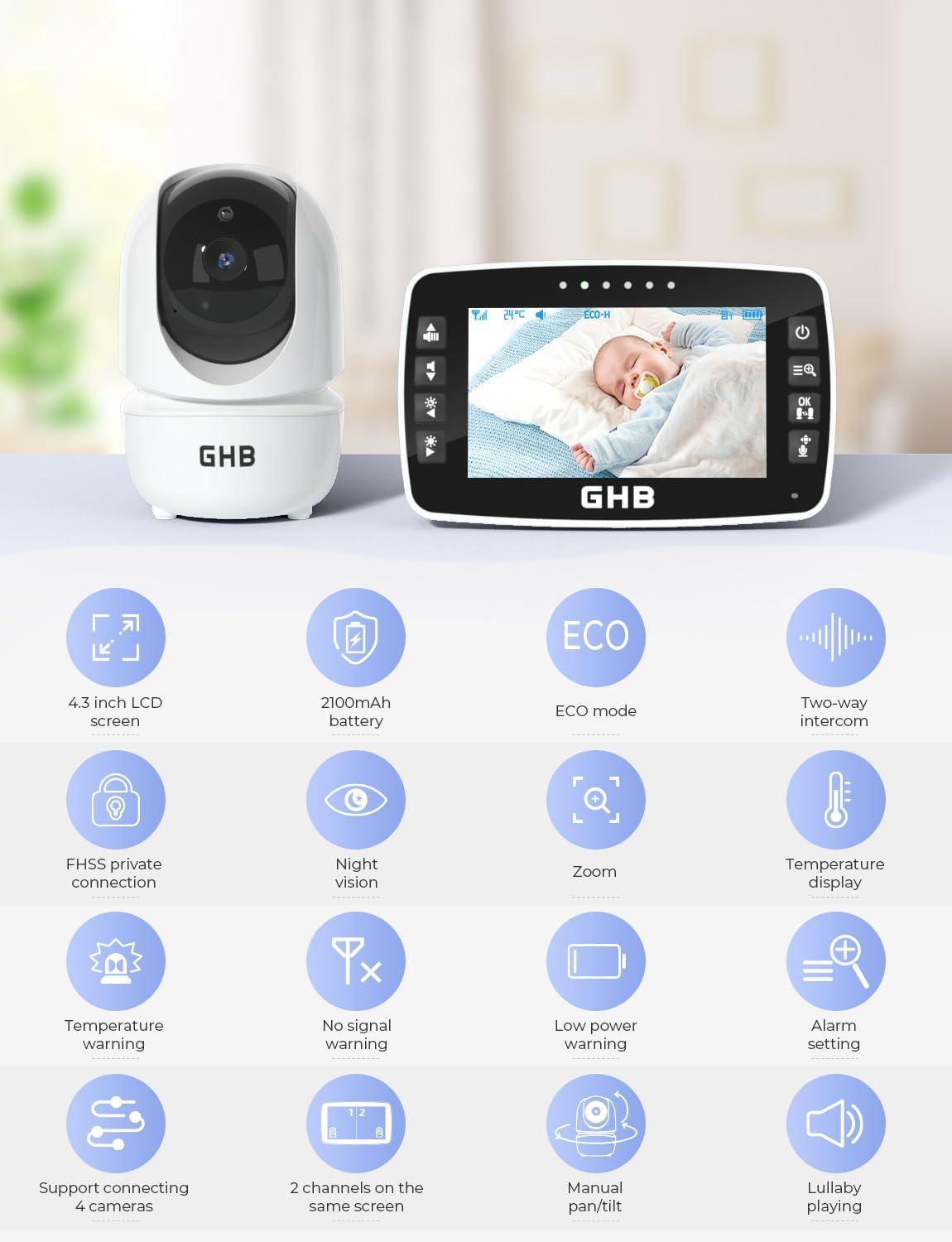 GHB Babyphone Mit Kamera 7 Zoll - 1080P IPS Display 168h Akkulaufzeit