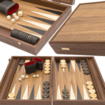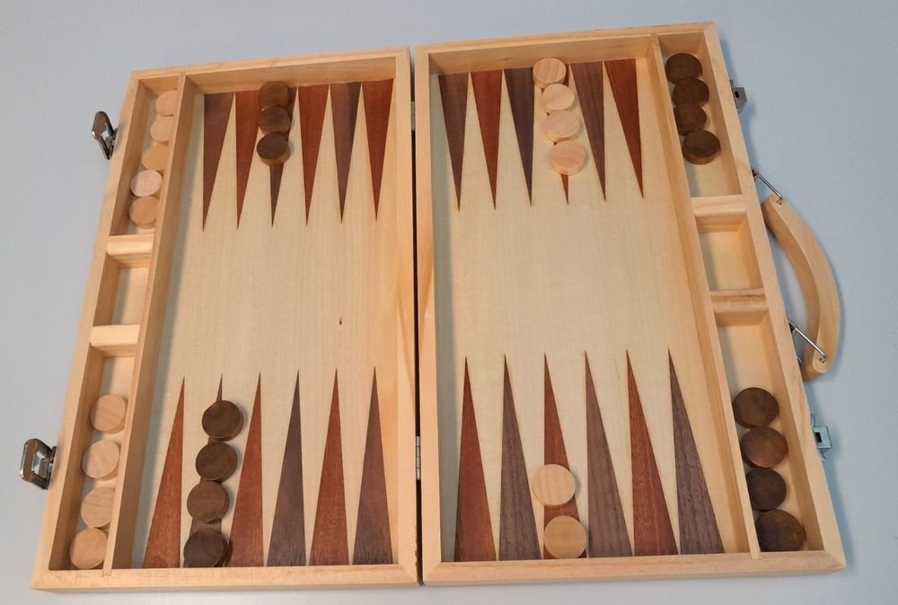 Backgammon Set 15 Zoll Aus Holz - Tragbar Mit Ledertasche